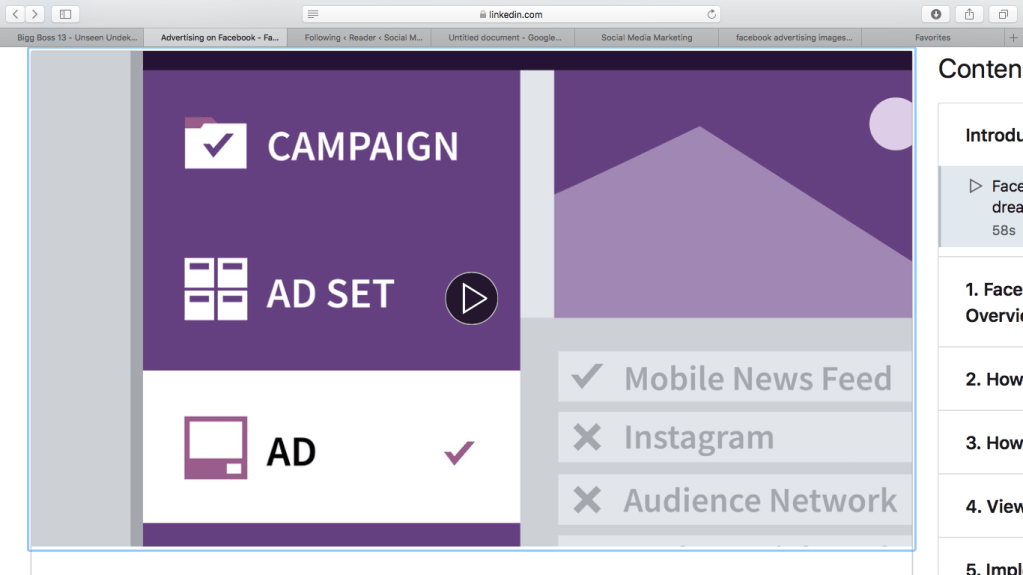 Overall, in this video by Adams, we got to learn about the usefulness of advertising on Facebook. The speaker talked about basics to teach his listeners about how to setting up your account and then went in dept about managing your account and some basic policies & procedures. Personally, i found some interesting ads over the years on my facebook page, although i never bought anything after getting influenced by those ads.